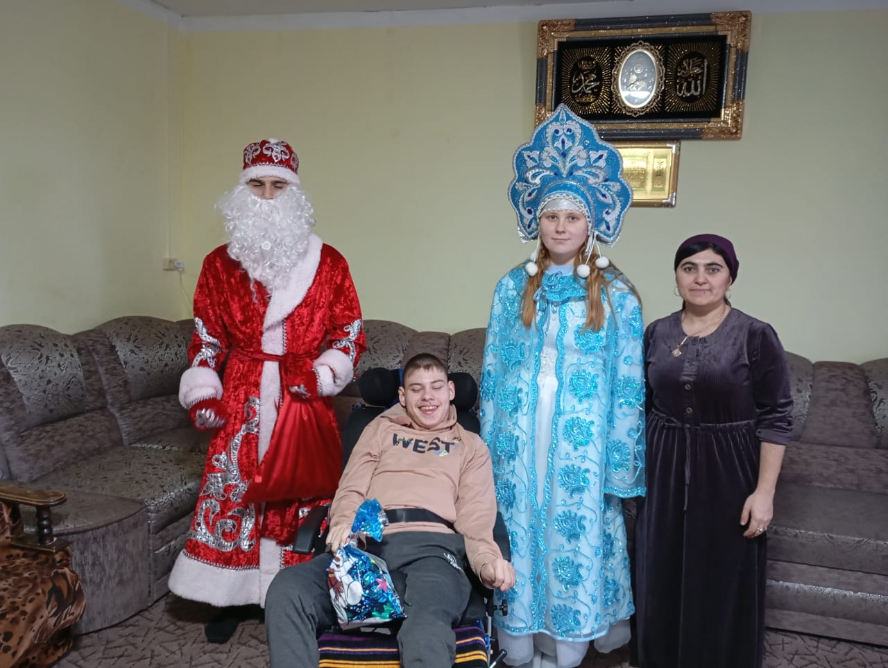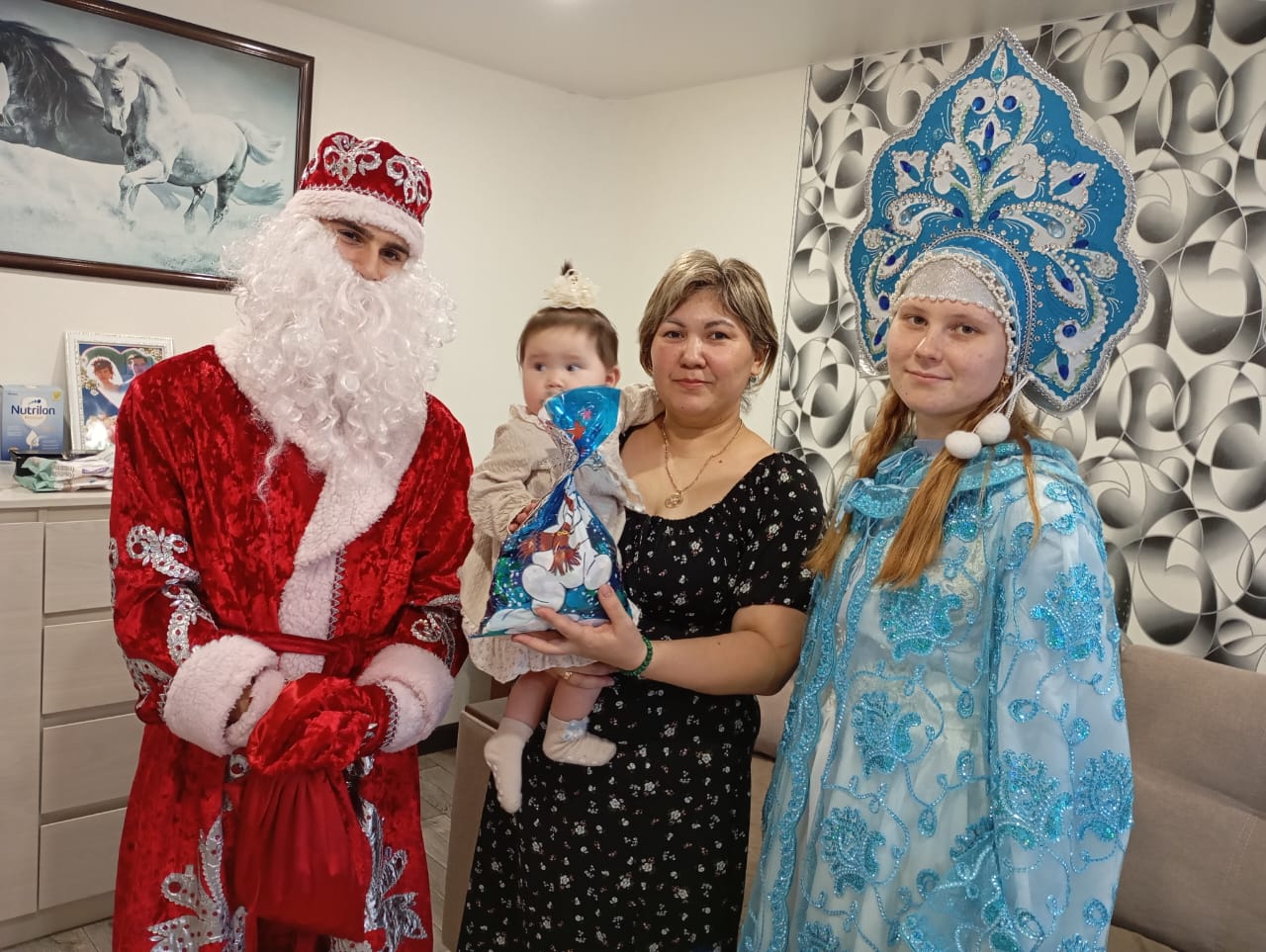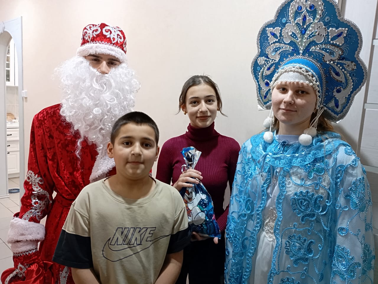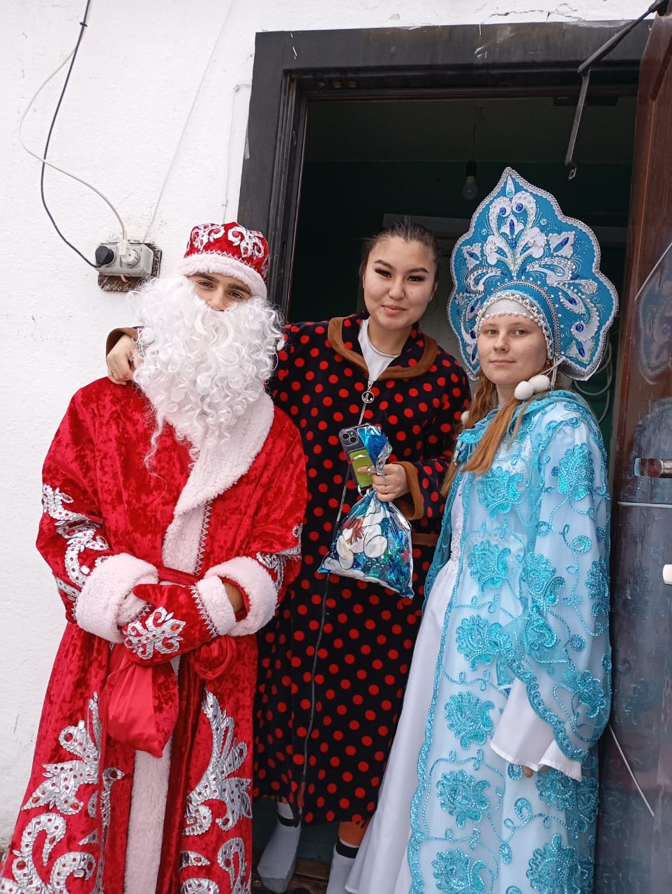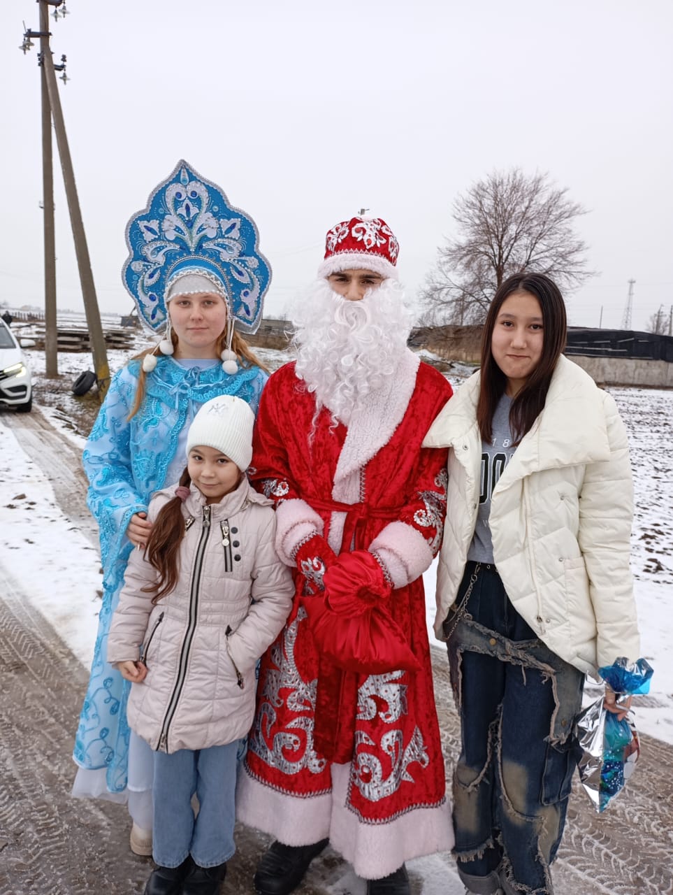 25 декабря , традиционно, дети участников СВО и дети-инвалиды получили новогодние подарки от администрации нашего поселения. Дед Мороз и Снегурочка (Япидов Карим и Фоменко Юлия) с водителем администрации (Овчаренко Николай) развезли долгожданные подарки.