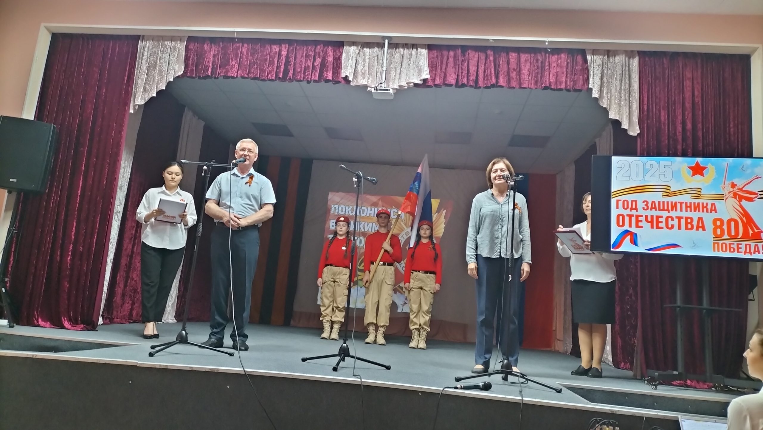 18 апреля 2025 года Красносельский СДК принял районную эстафету культуры «Поклонимся великим тем годам..!», посвященную Году Защитника Отечества и 80-летию Победы в Великой Отечественной войне 1941-1945 годов. Мероприятие открыли юнармейцы патриотического клуба «Застава», которые внесли в зал государственный флаг. Традиционно, прозвучал гимн Российской Федерации. Ведущие Айна Танатарова и Юлия Селезнева представили членов районной творческой комиссии: